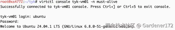 进入虚拟机:virtctl console tyk-vm01 -n must-alive