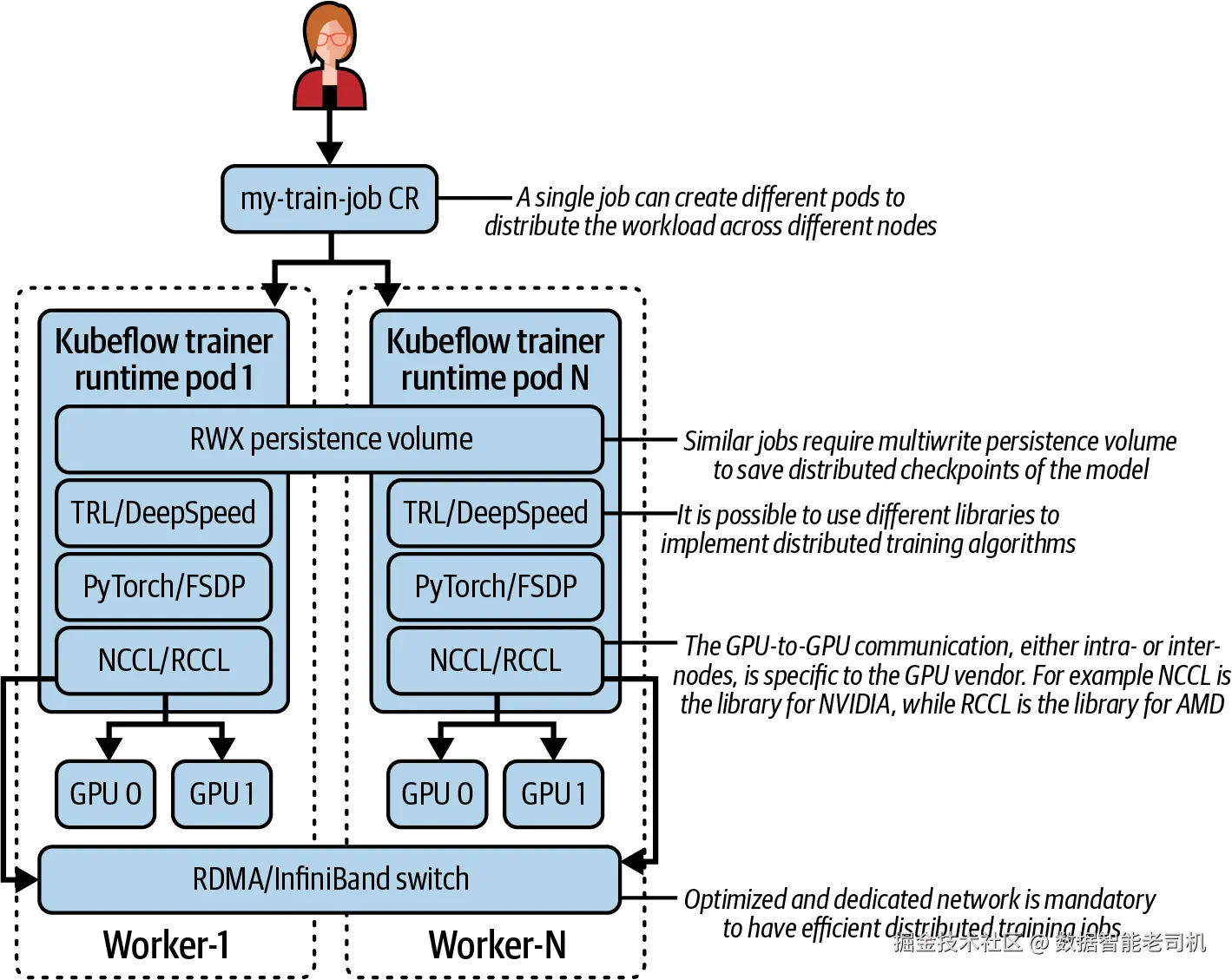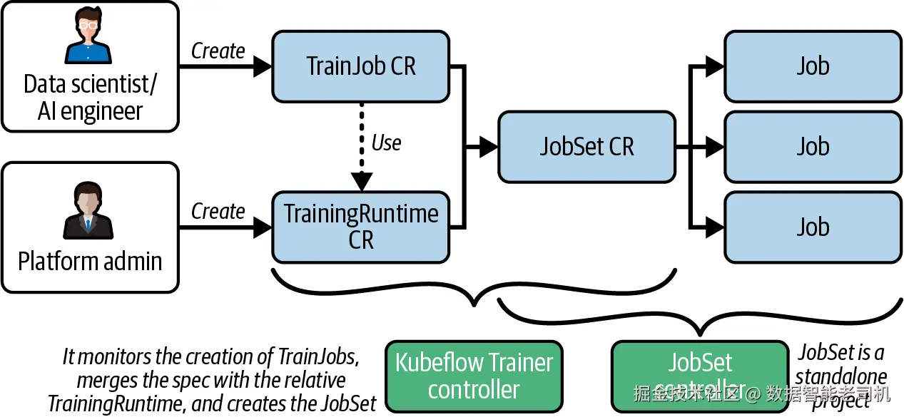 Kubeflow Trainer 的设计思路,是用 Kubernetes-native 的方式来管理分布式训练任务的生命周期,同时允许平台管理员和数据科学家继续使用各自熟悉的工具。
