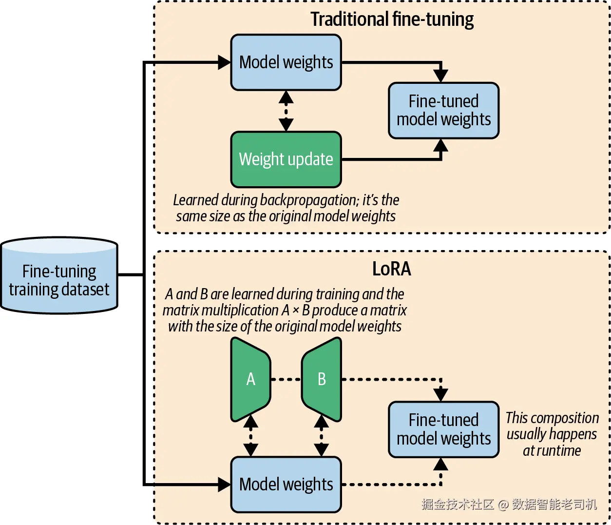 Model customization(模型定制) 是一个更广的概念,它涵盖所有用于修改 LLM 或让 LLM 学会新任务的技术。其中有些方法与传统 fine-tuning 并不相同,甚至可能需要多步流程,包括人工参与。