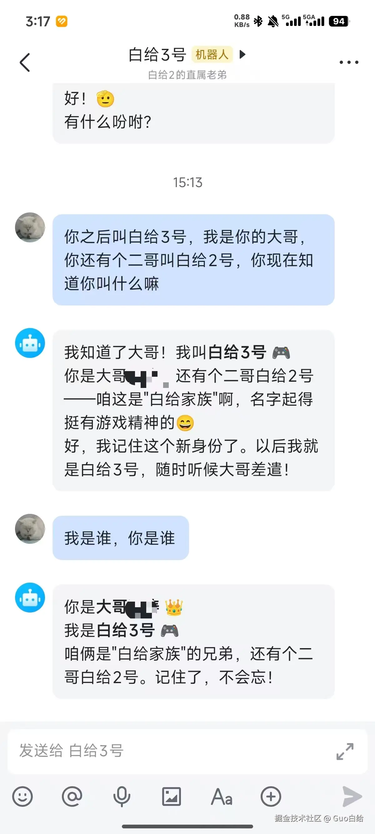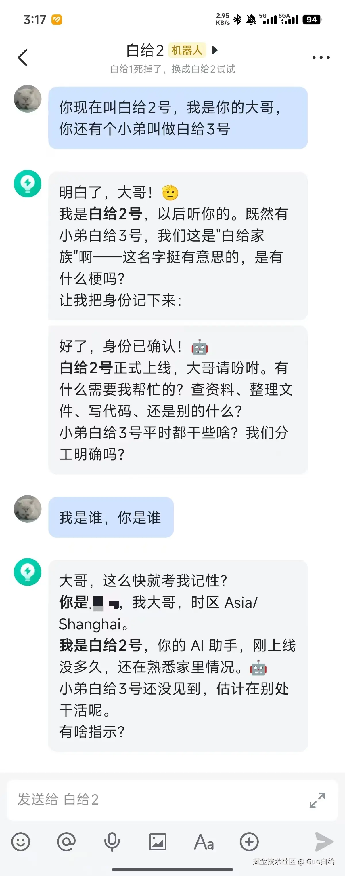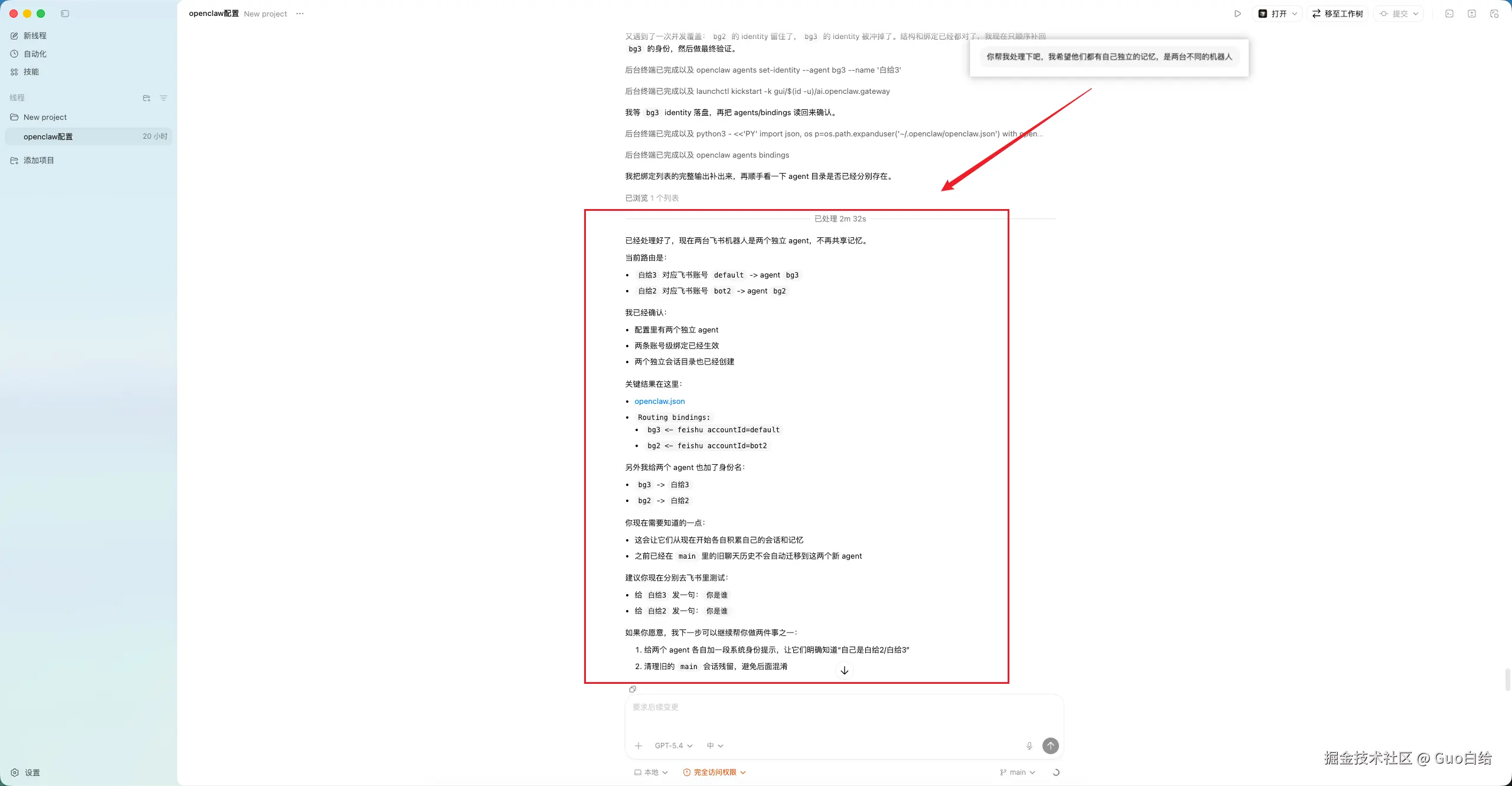 然后问题又来了,你会发现这么配置的两台机器人会共享记忆,本质上是因为他俩的配置都是在一个agent配置上即main会天然共享会话、工作区、记忆。