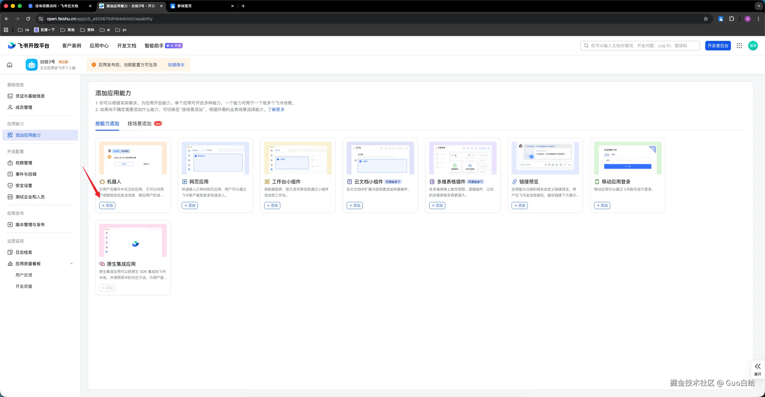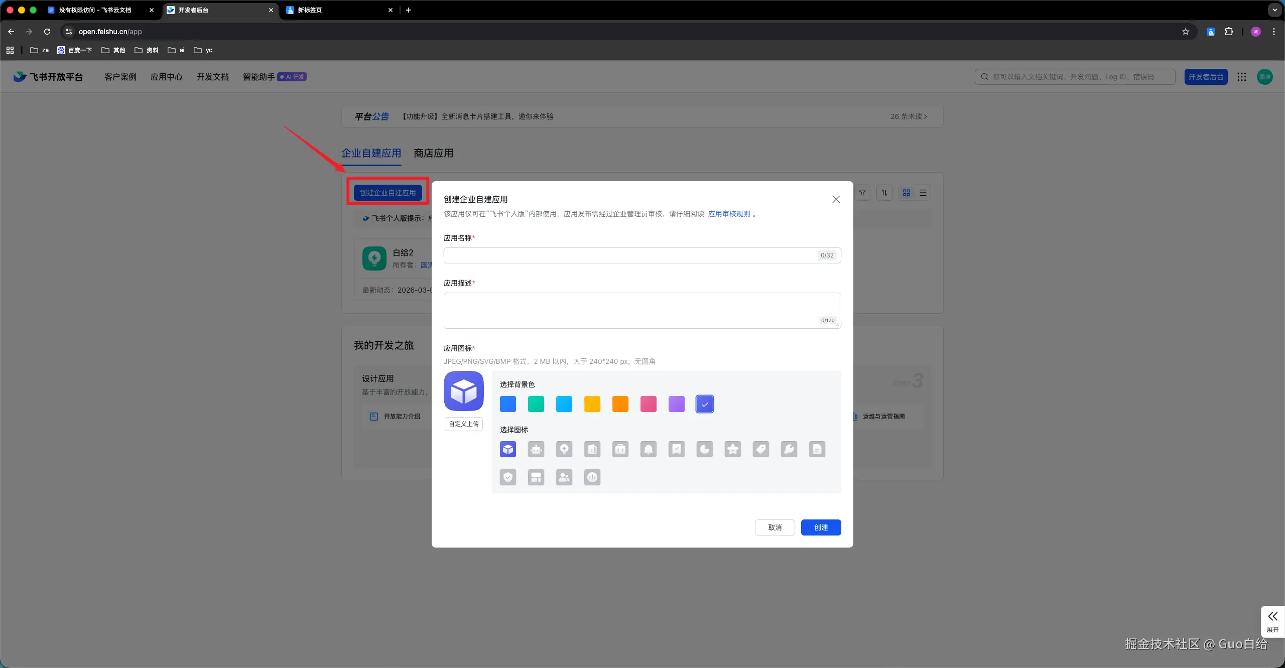 首先需要先创建一个飞书机器人打开飞书开放平台 open.feishu.cn/app登陆注册后操作如...