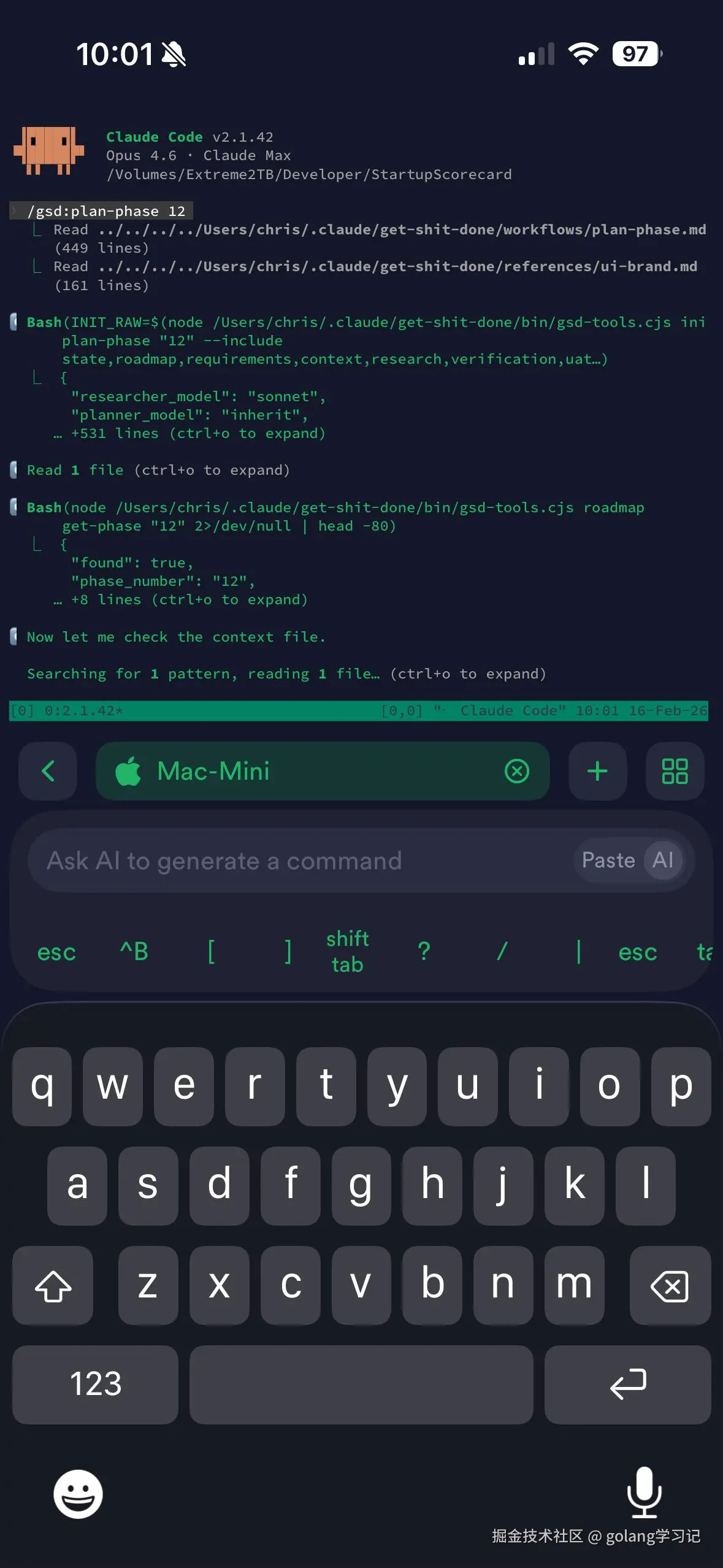 服务器运行Claude Code → 手机随时接入 → 持续开发迭代