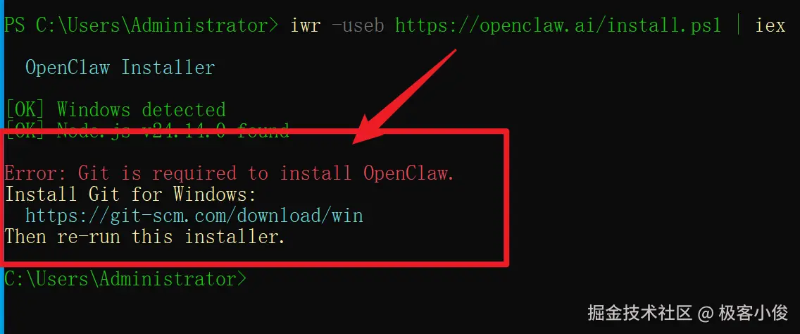 否则你安装OpenClaw的时候可能就会出现类似于这样的错误~