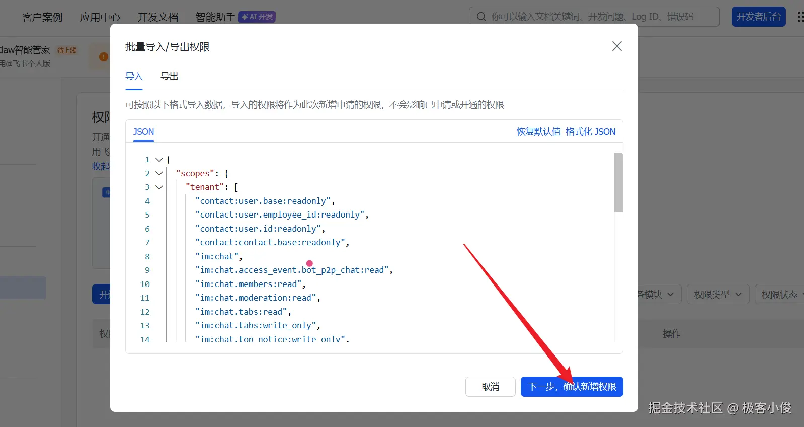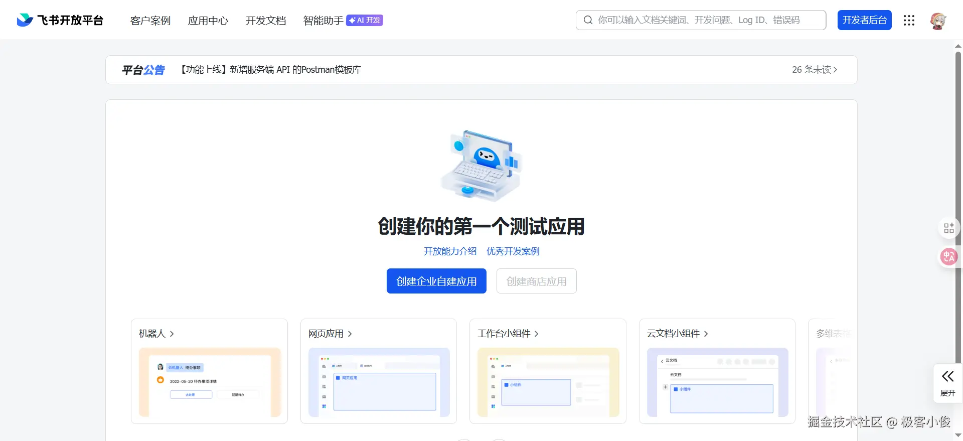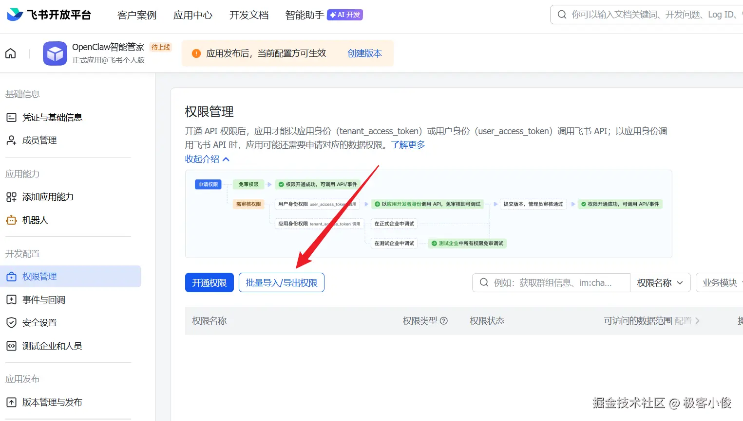 然后接下来这一步是让 OpenClaw 对接你的飞书账号,需要你先在飞书开放平台创建应用并获取凭证~