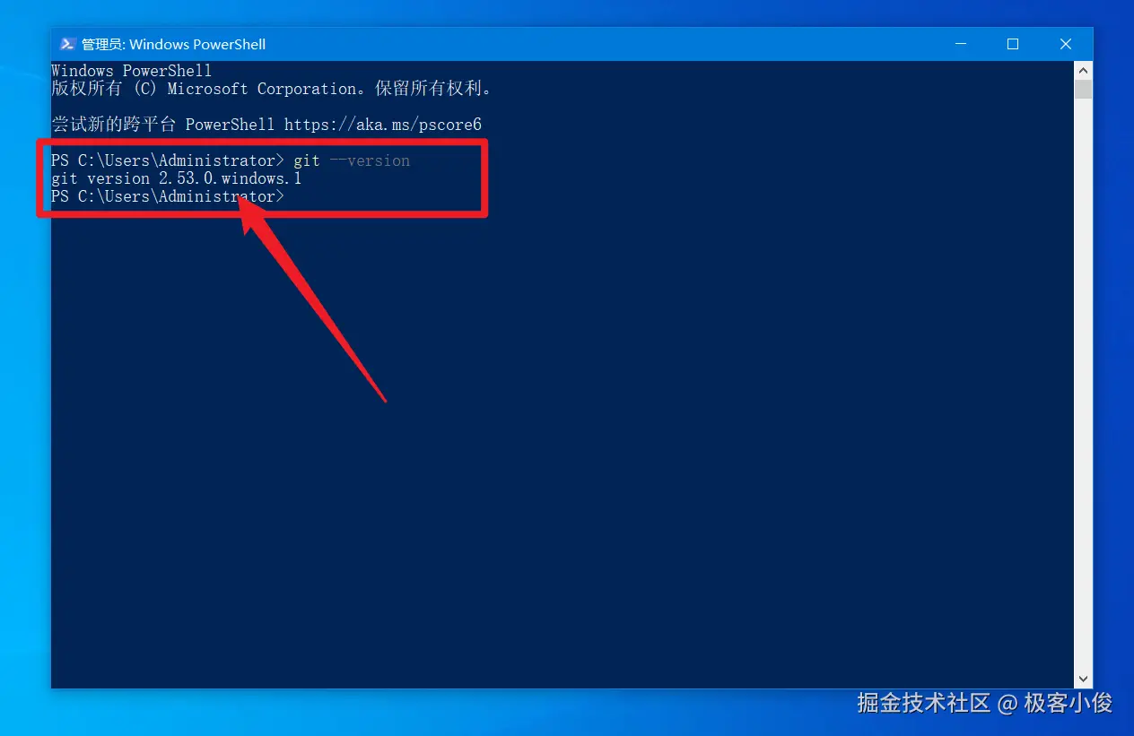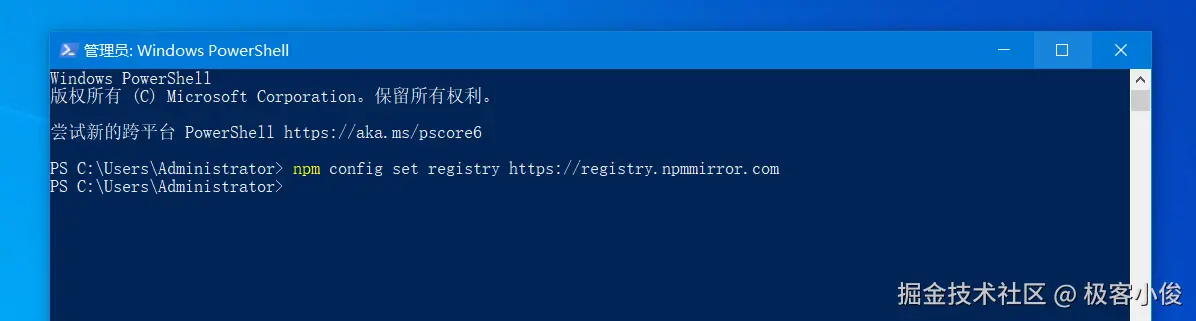 当然如果想在cmd里操作,也可以先输入 powershell 回车切换到PowerShell环境,再执行上面这个安装命令,效果一样~