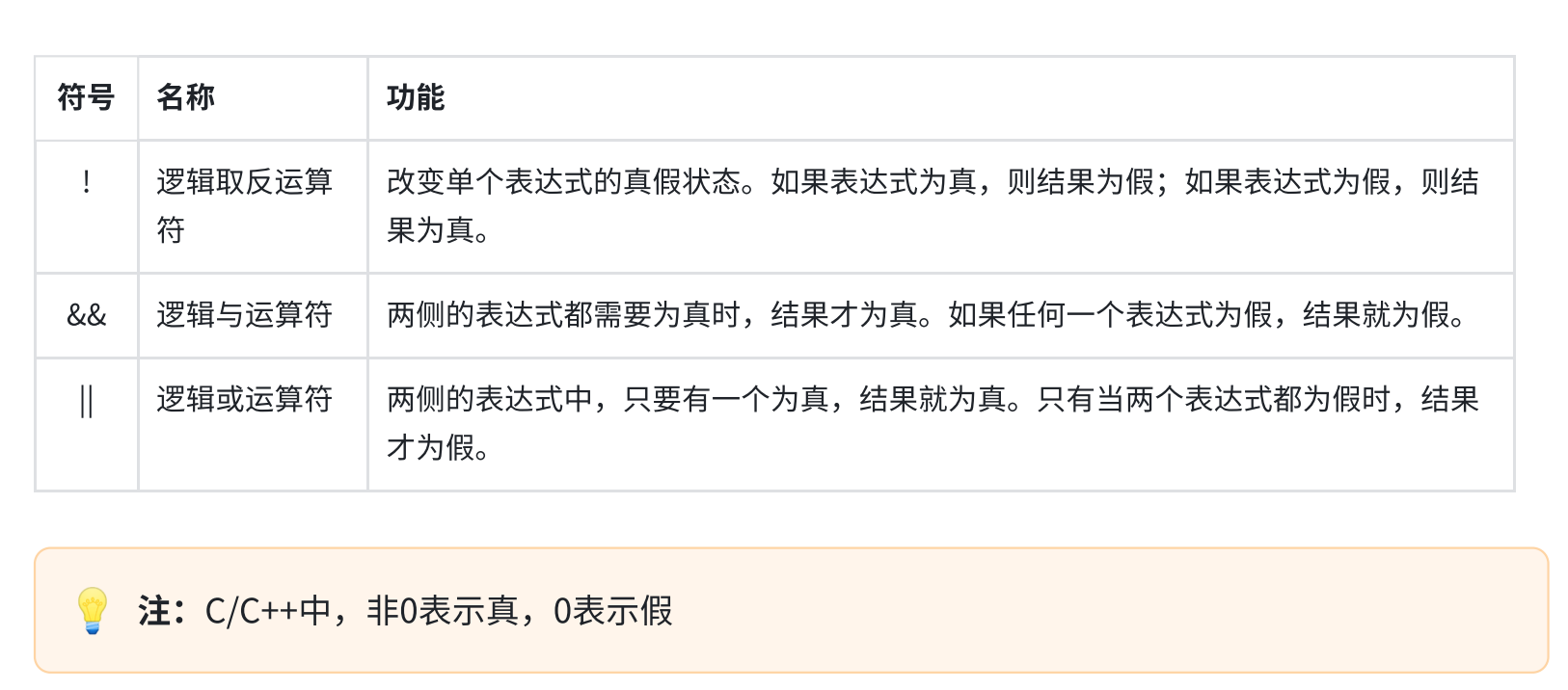 逻辑运算符提供逻辑判断功能,用于构建更复杂的表达式,主要有下面三个运算符