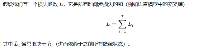 h_t-1 是上一时刻的隐藏状态,x_t 为当前输入,两个W是权重矩阵。