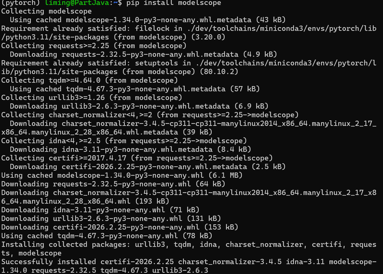 - 环境配置:通过 Conda 管理 Python 环境 → 验证 GPU 可用性 → 安装 PyTorch/vLLM/ModelScope;