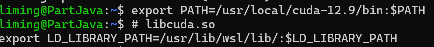 export LD_LIBRARY_PATH=/usr/lib/wsl/lib/:$LD_LIBRARY_PATH