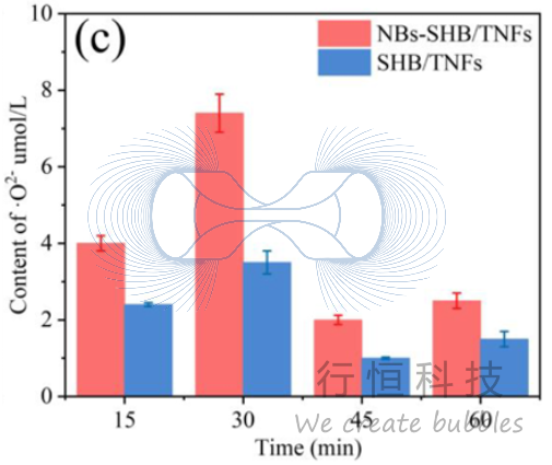 同时,NBs-SHB/TNFs系统产生的O₂·⁻浓度是SHB/TNFs系统的约两倍: