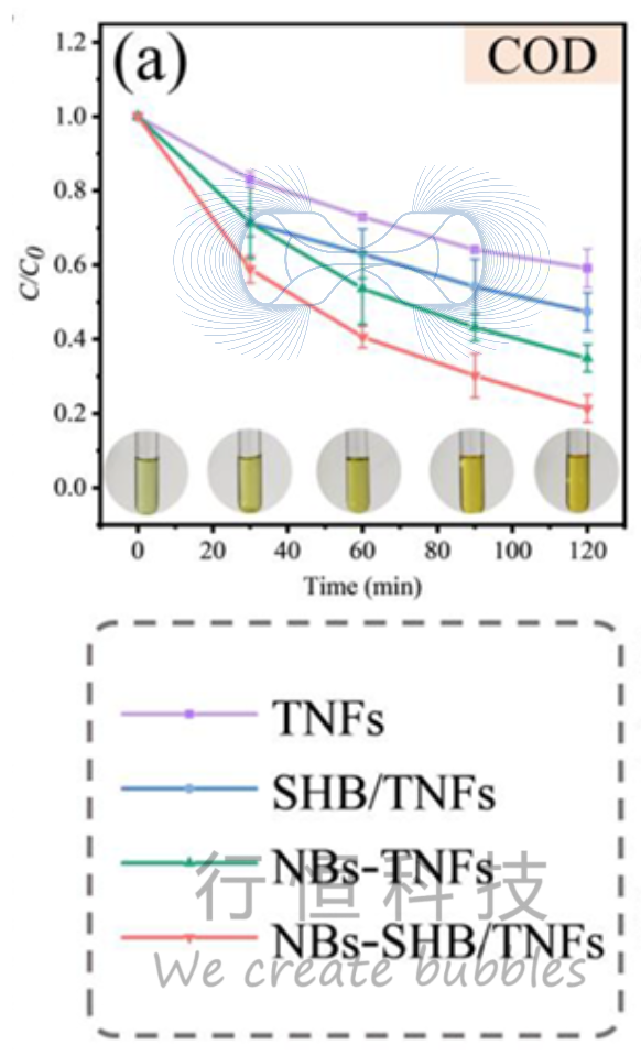 - COD去除 :在处理合成废水时,NBs-SHB/TNFs系统实现了约80%的COD去除率: