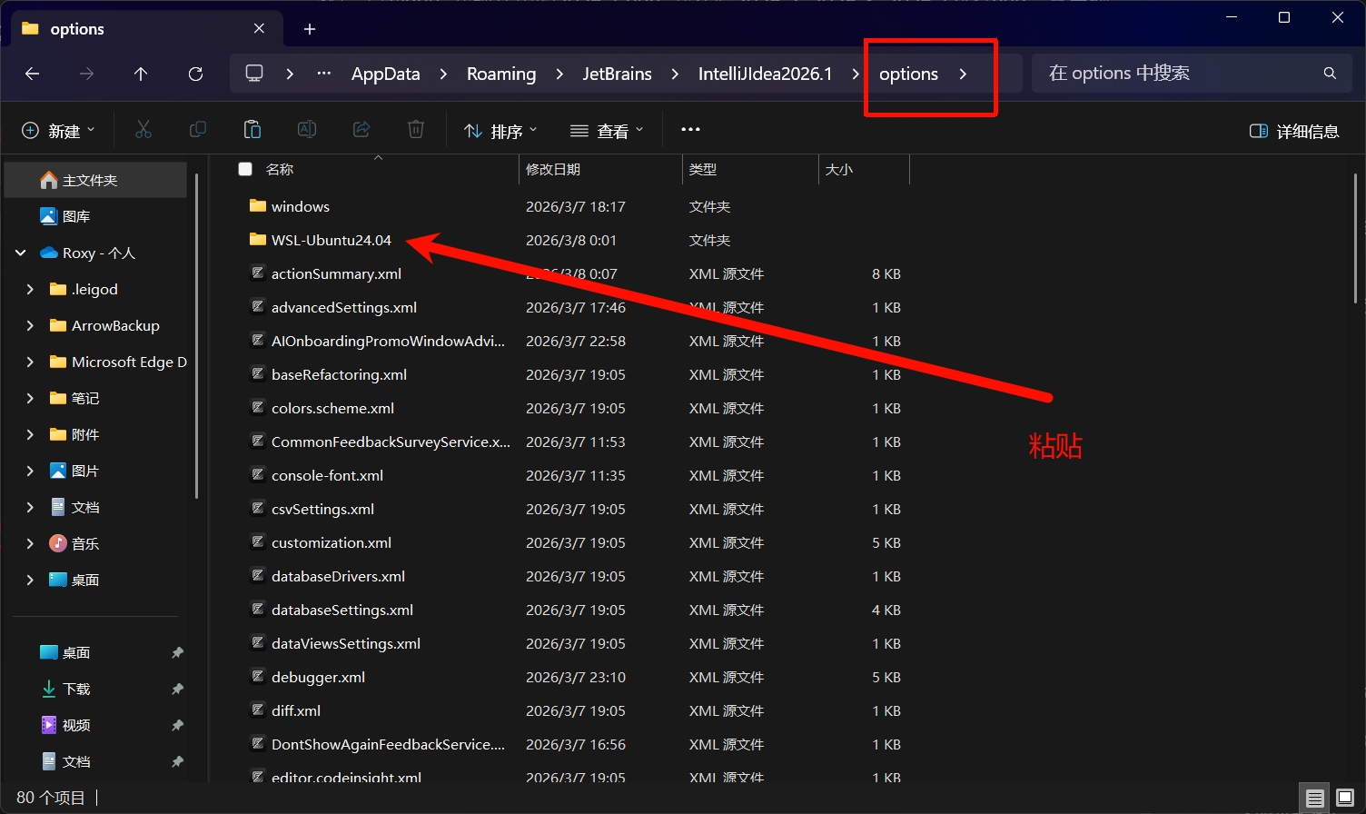 进入options文件夹里面, 粘贴