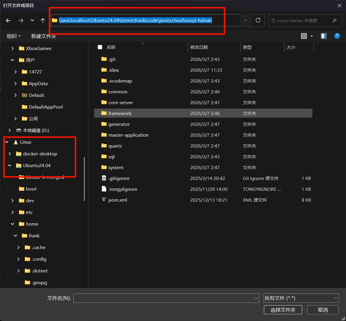 idea和之前一样, 直接打开项目(项目要在wsl中)