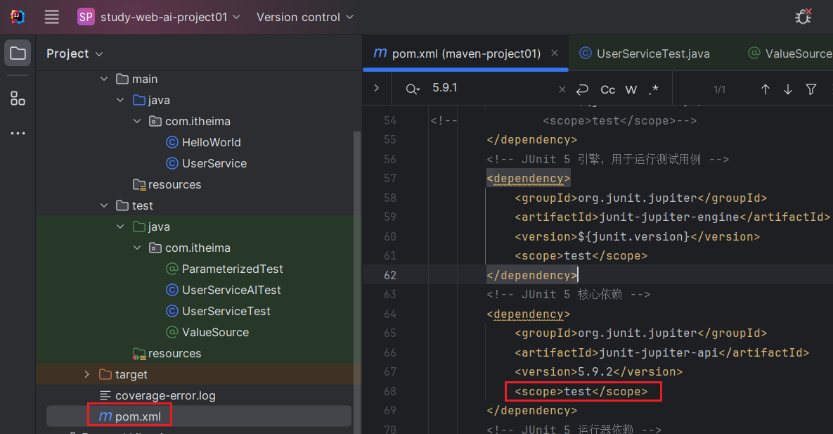 ● 在 src/test/java/.../*Test.java 文件中正常使用 JUnit、Mockito 等测试框架。