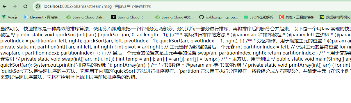 public Flux<String> testStream(@RequestParam(name = "msg", defaultValue = "你是谁") String msg) {return chatModel.stream(msg);}