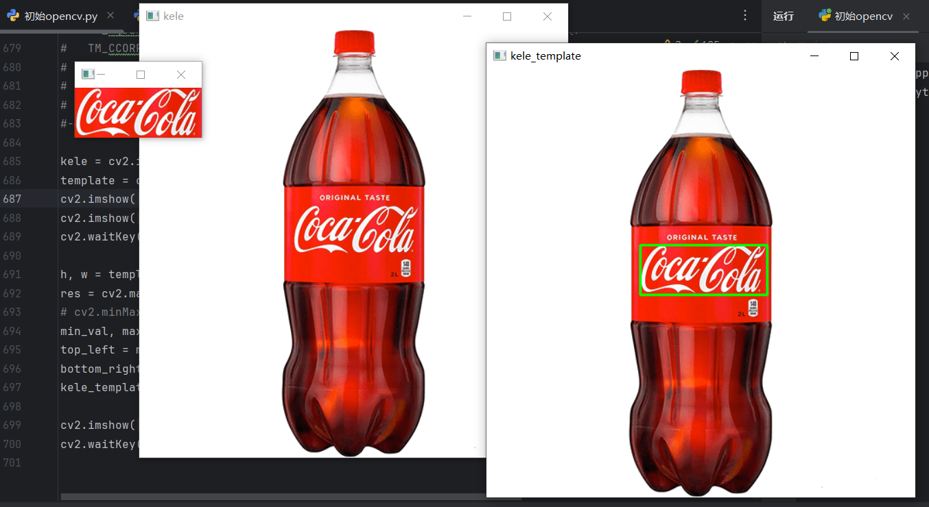 kele_template = cv2.rectangle(kele, top_left, bottom_right, (0, 255, 0), 2) # 绘制矩形