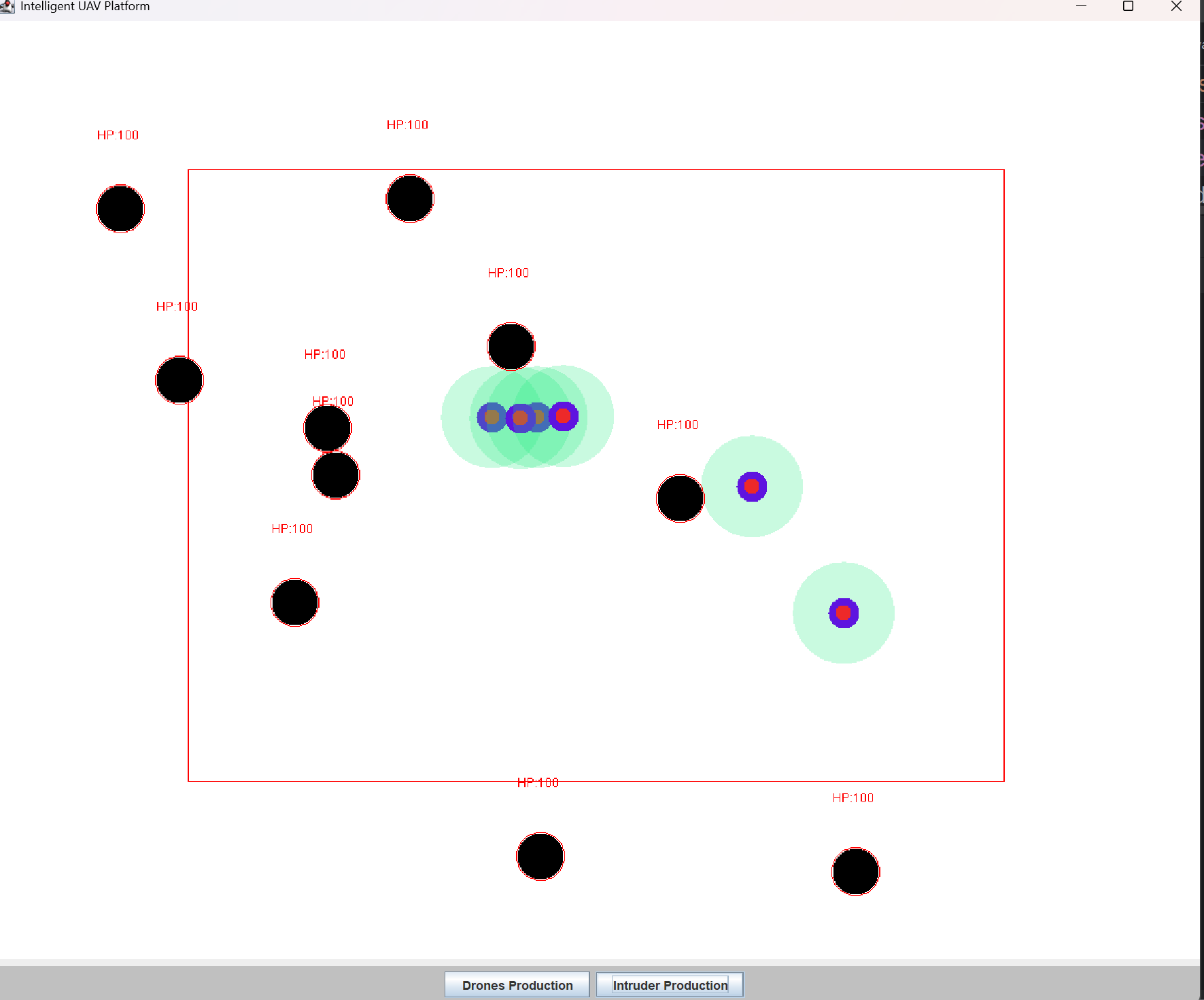 - 实现广播机制 与任务分配机制,让所有无人机共享入侵者信息,每个无人机同一时间只锁定一个目标,避免资源浪费,实现多无人机协同围剿