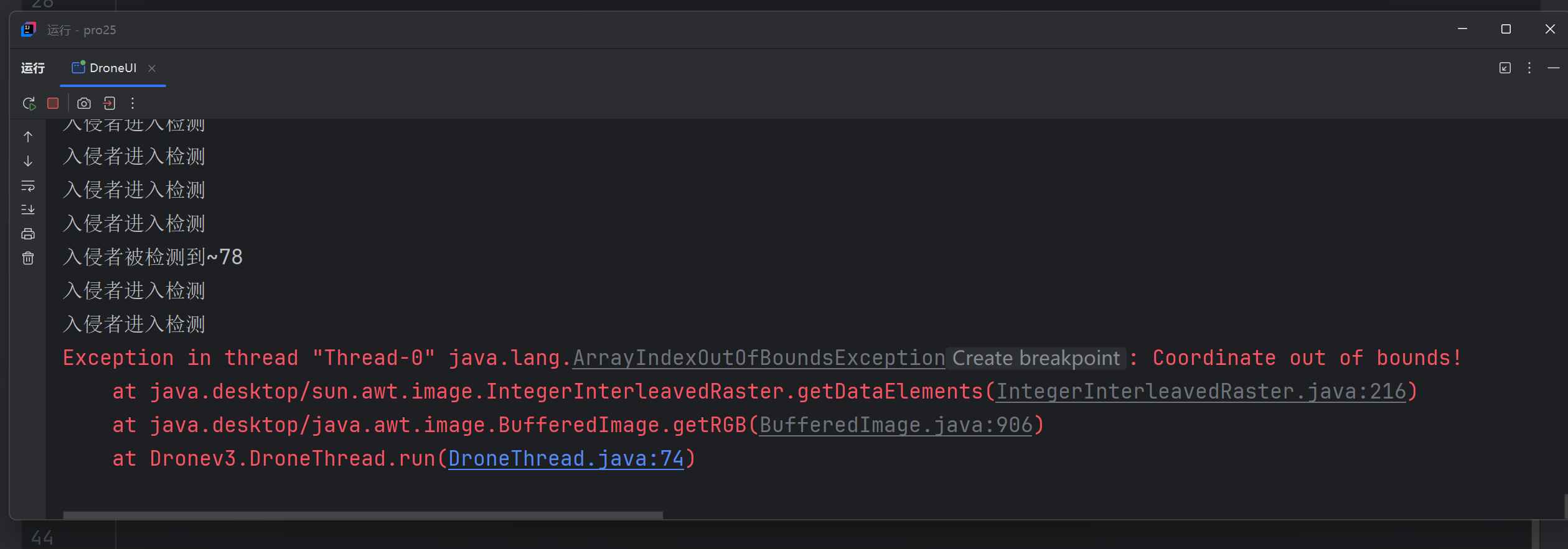 现象 :程序运行几分钟,或频繁点击生成按钮后直接崩溃,控制台报ArrayIndexOutOfBoundsException。