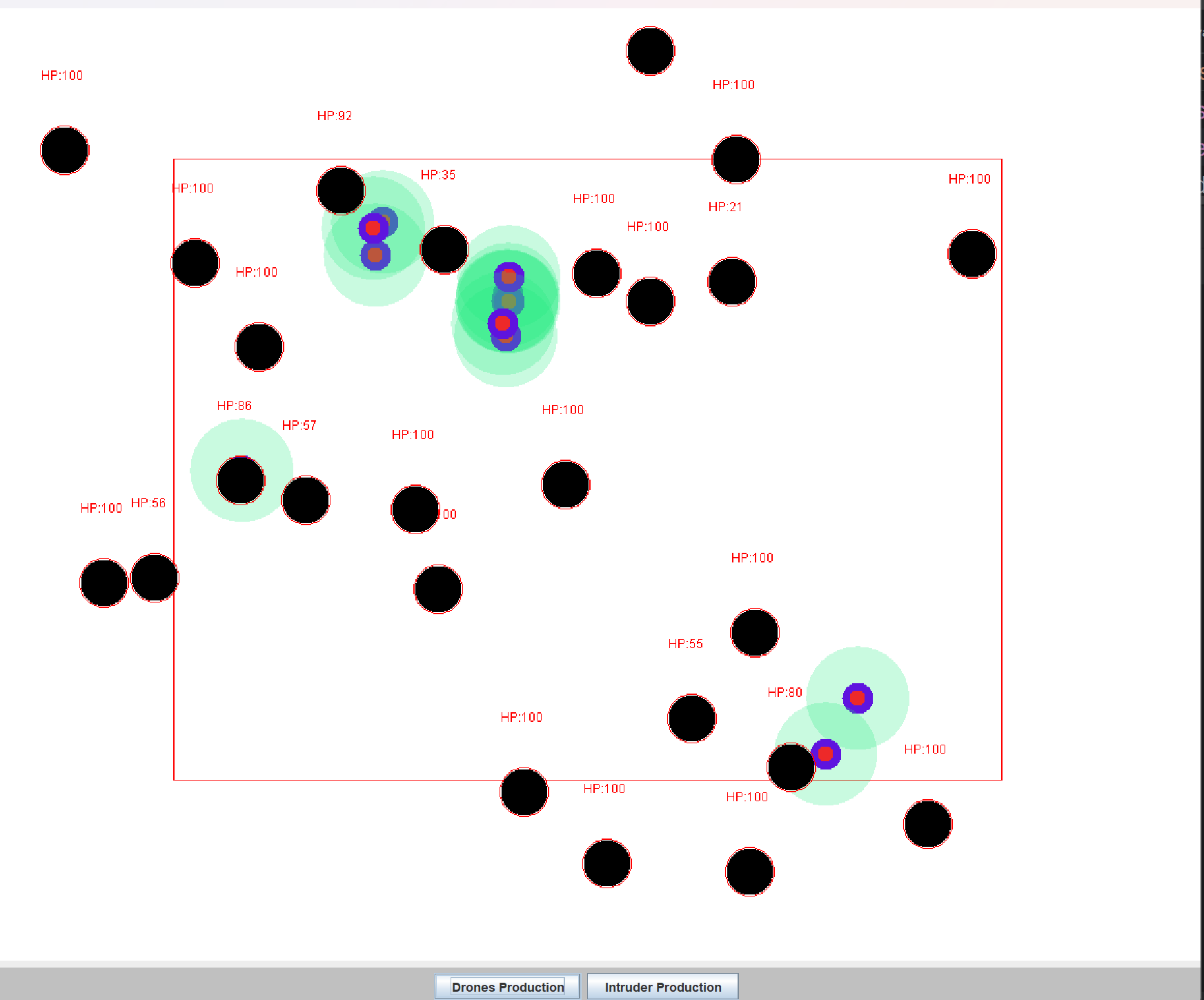 // 入侵者扫描无人机:每个活着的入侵者扫描周围区域,检测到无人机则扣血