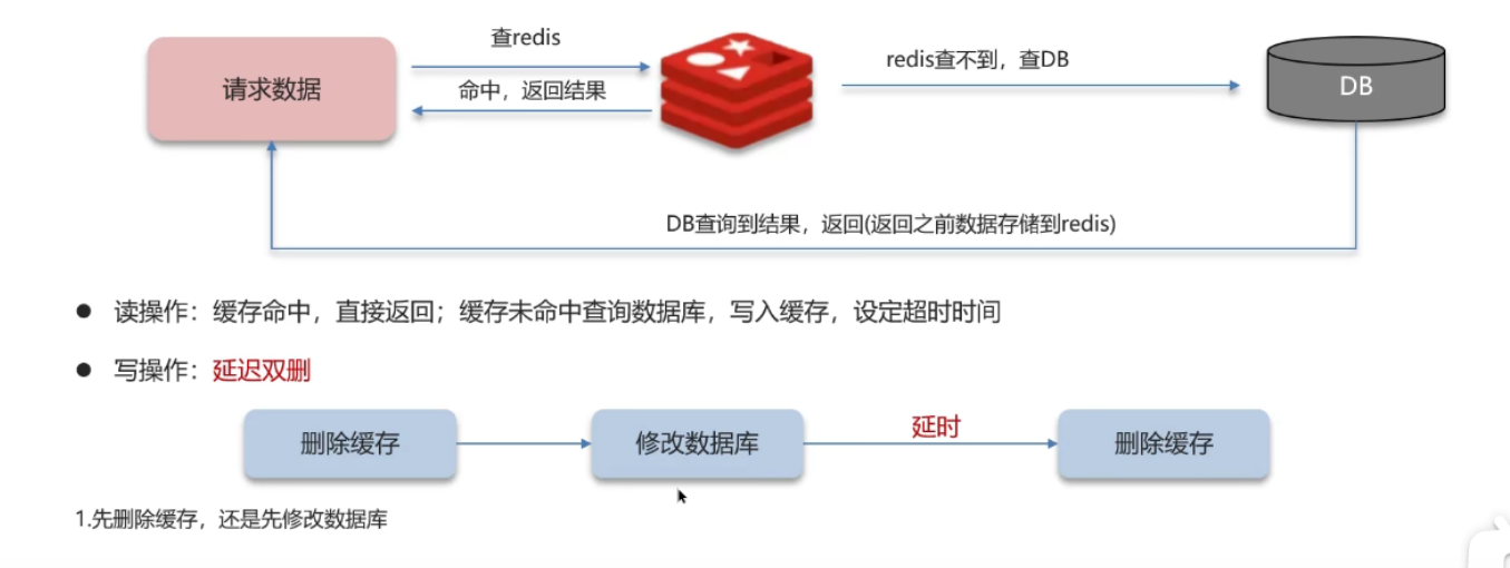 写操作:先删缓存 → 更新数据库 → 延迟N秒(如1-5秒)再删一次缓存