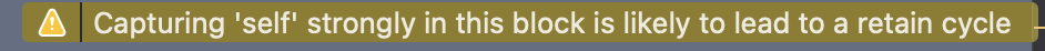 上面警告内容就是提示我们在block中对self的捕获是强引用。可能会导致循环引用(retain cycle)