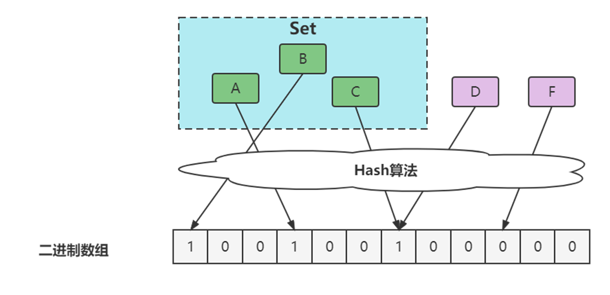 相比于传统的 List、Set、Map 等数据结构,它更高效、占用空间更少,但是缺点是其返回的结果是概率性的,而不是确切的。