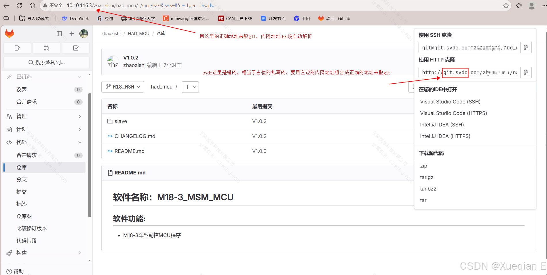 http://git.svdc.com/hahahahaXXXXX/had_mcu.git 仓库里面的"代码"按钮里给的是这样的,进行如图替换即可。这个就是个假地址