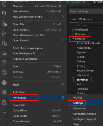 settings.json文件。 - 关闭并重新打开 VSCode 的终端(快捷键