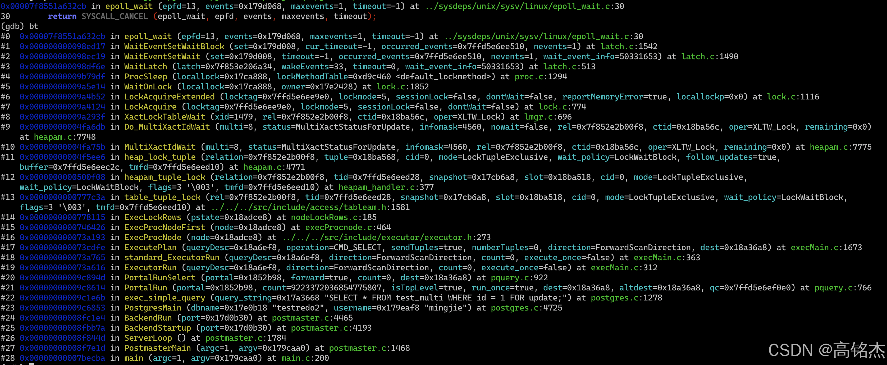 - 一个行锁,xmax直接放xid。两个行锁,xmax放multixactid,然后multixactid=1 → offset,offset → 数据。双SLRU存储请参考[《Postgresql源码(156)MultiXact机制分析》]。(https://blog.csdn.net/jackgo73/article/details/158853458)