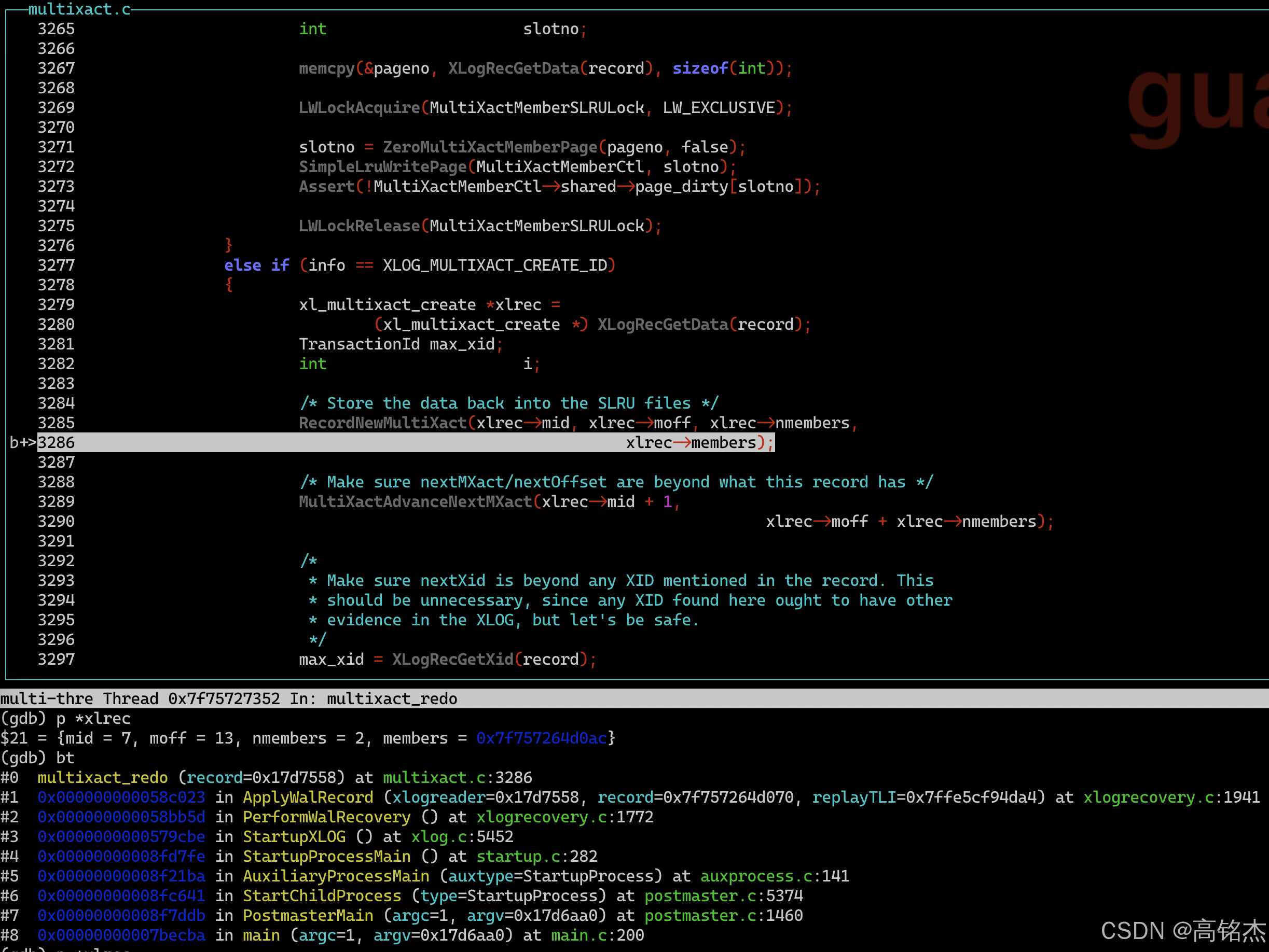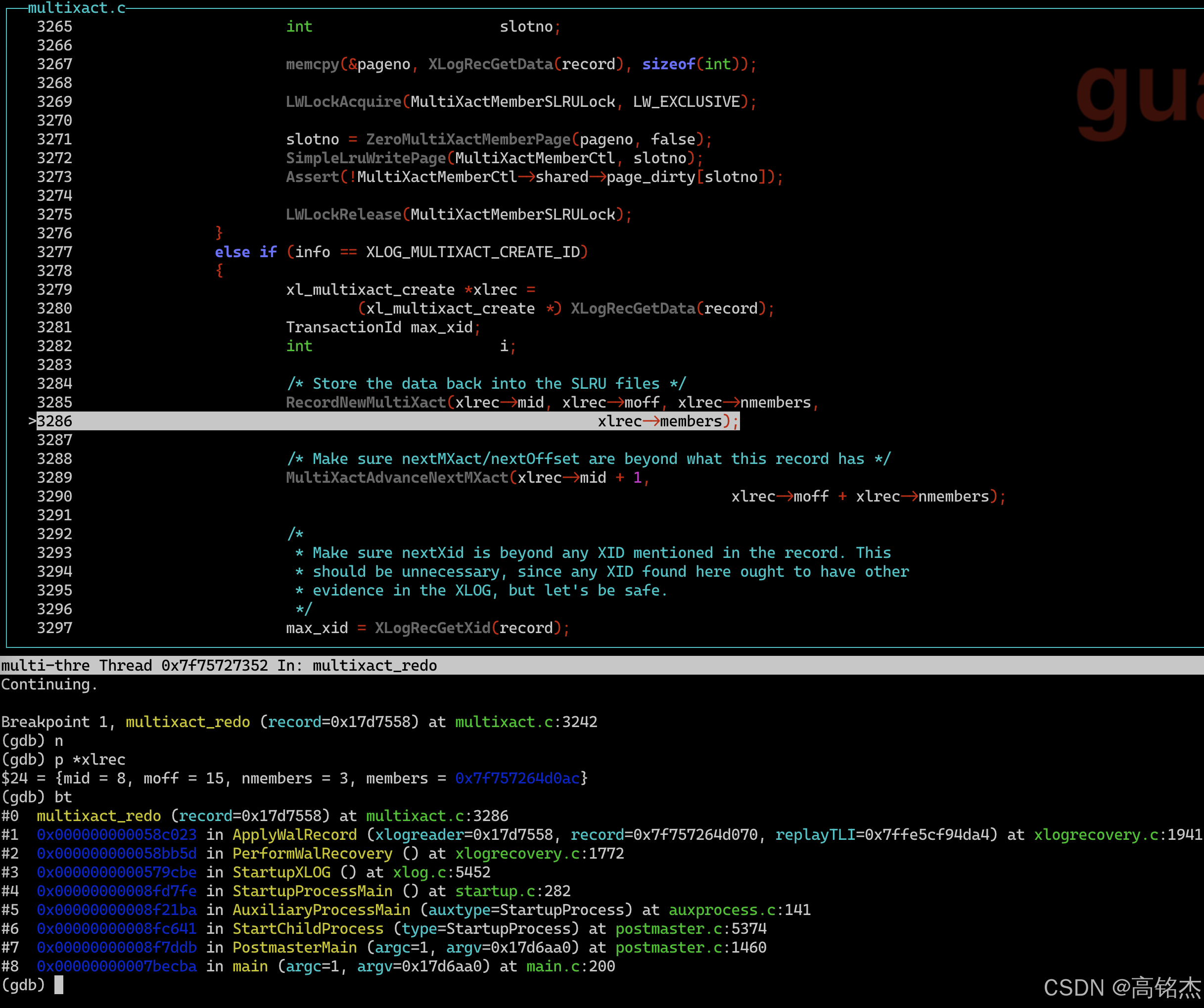 | CREATE_ID | XLOG_MULTIXACT_CREATE_ID | 0x20 | RecordNewMultiXact() + 推进计数器 |