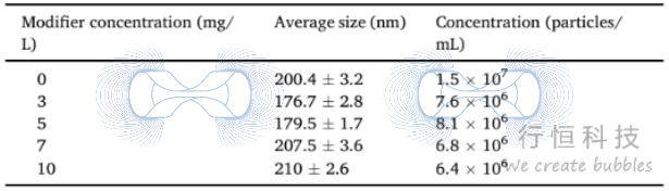 改性剂对微纳米气泡特性的影响