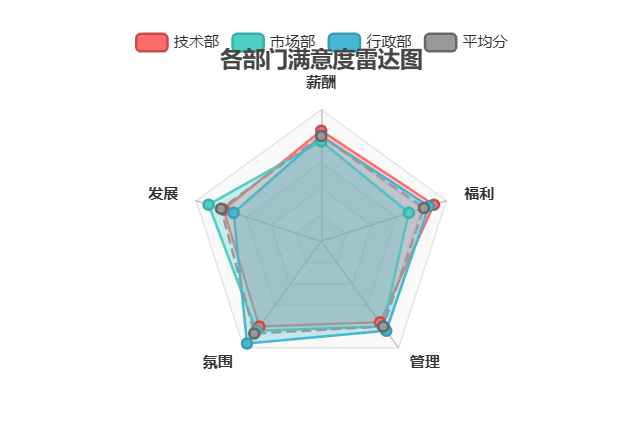 业务场景:HR需对比不同部门在5个维度的满意度评分