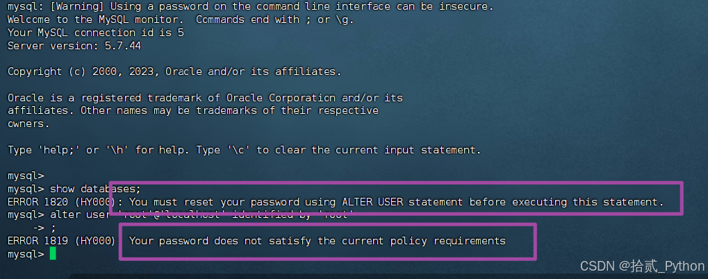 以及 我们在修改密码时,系统默认是需要我们设置强密码的,MySQL 为了安全,默认开启了密码复杂度检查组件(validate_password)。
