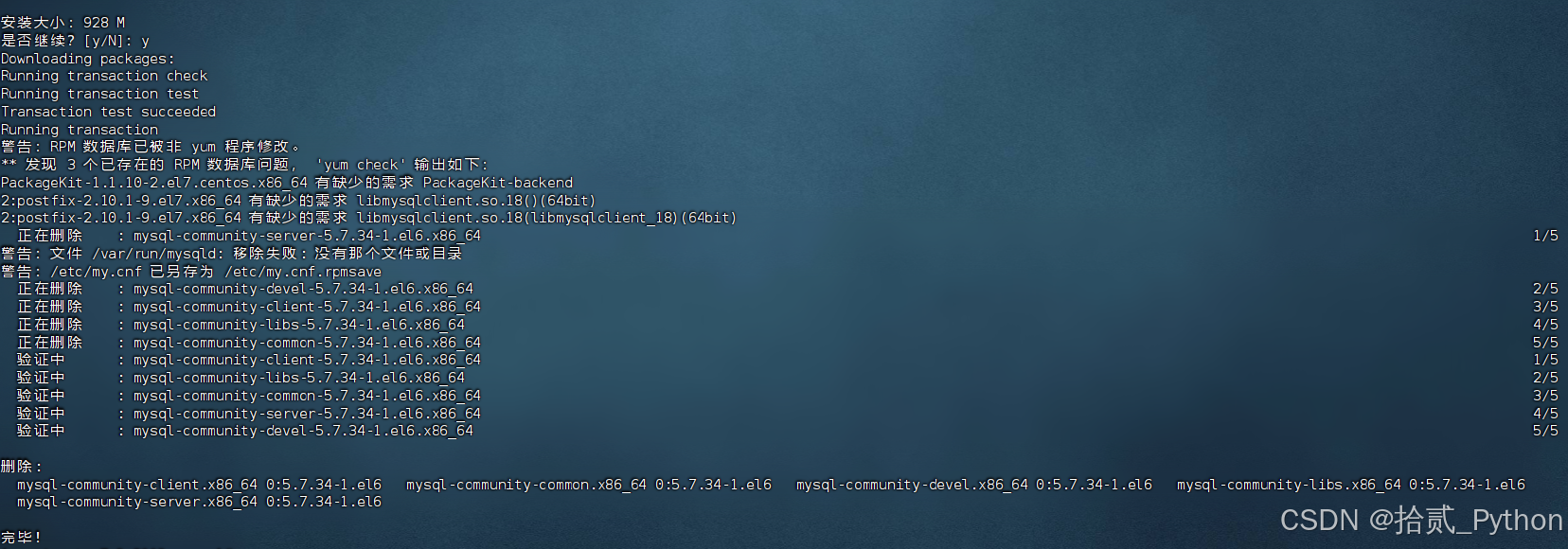 需要注意的是,如果你里面有重要数据,请先备份 /var/lib/mysql,如果是新安装则直接删