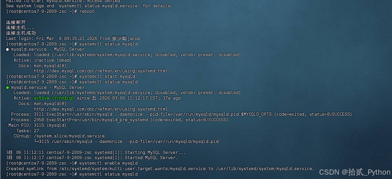 systemctl enable mysqld 的核心作用设置开机自启。 -