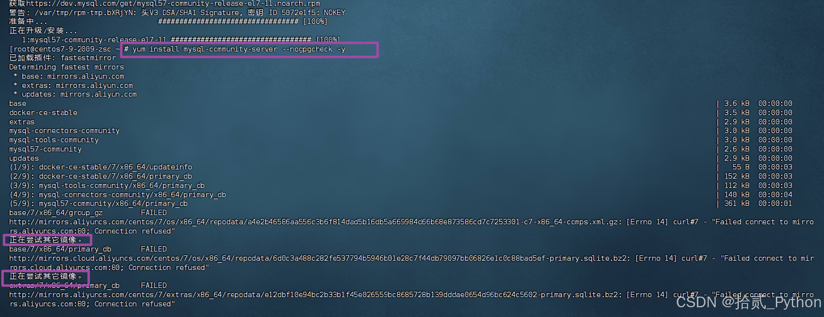 --nogpgcheck是为了绕过 MySQL 近期 GPG 密钥过期导致的验证错误,能保证一次安装成功。·