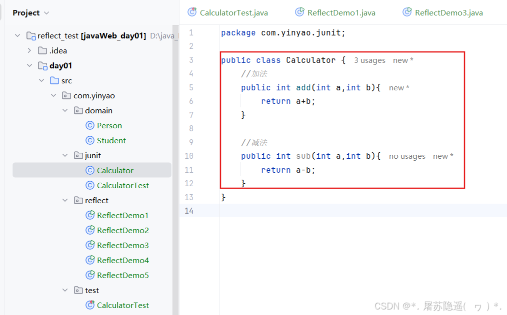 建议:测试类名为:被测试类名Test 如 CalculateTest