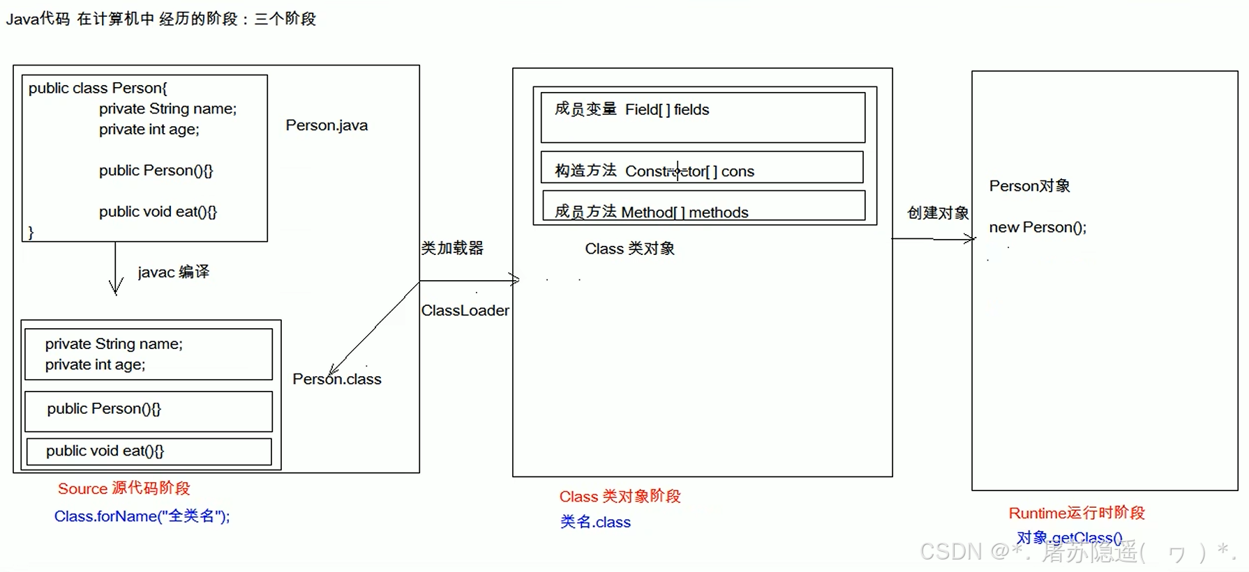 使用阶段:第二阶段,当字节码文件已经加载进了内存,这时有了Class对象,使用该方法