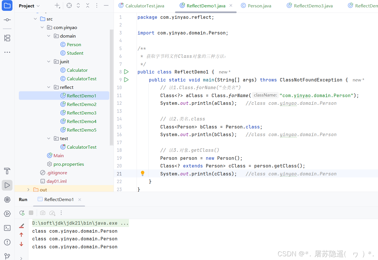 [3.1 获取字节码文件Class对象的三种方法](#3.1 获取字节码文件Class对象的三种方法)