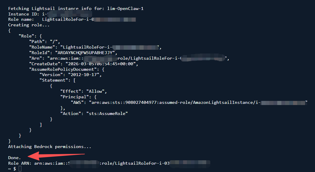 为了让 OpenClaw 具备强大的 AI 对话能力,我们需要为其授权访问 Amazon Bedrock(或者其他大模型)