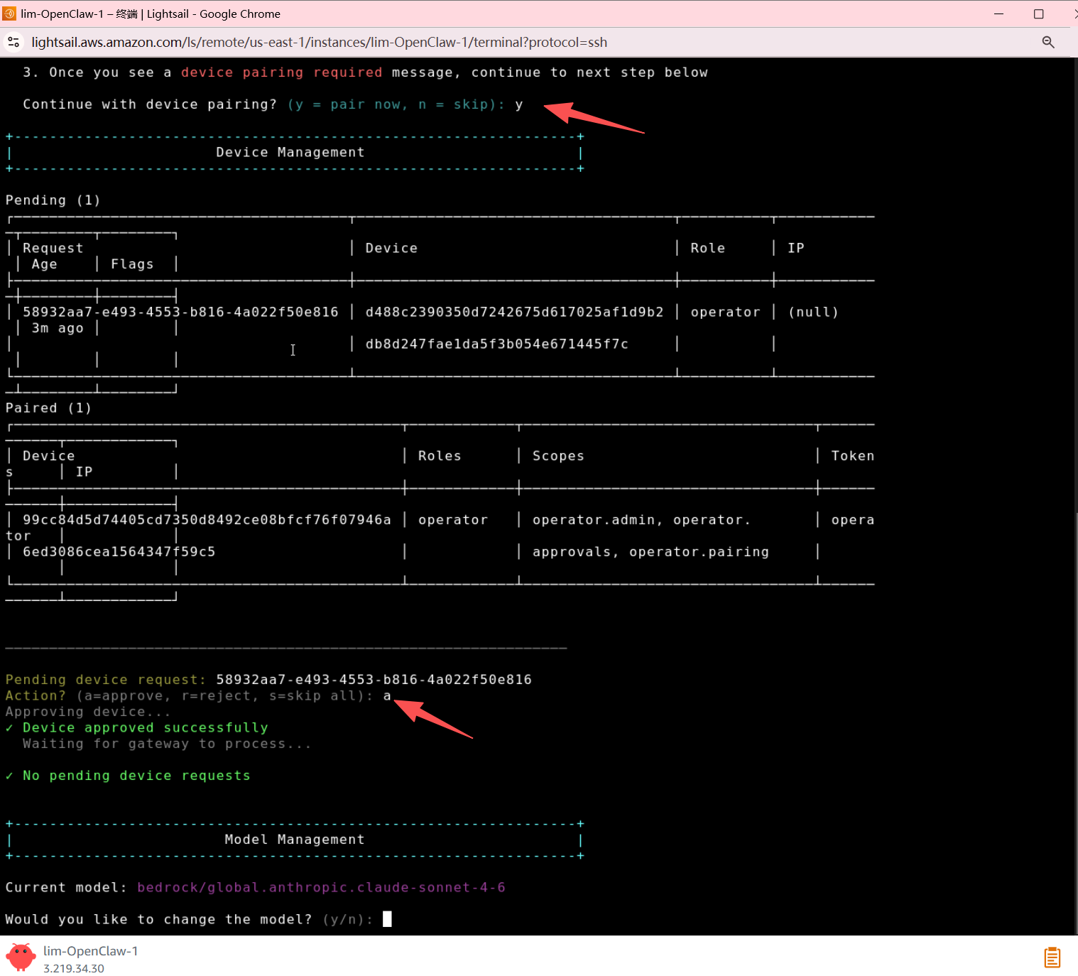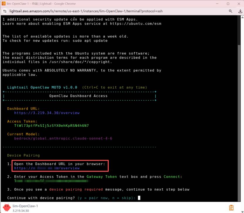 **提示:**如果以后需要配对另一个浏览器,只需重新SSH连接到你的实例, 重复上述配对步骤即可。