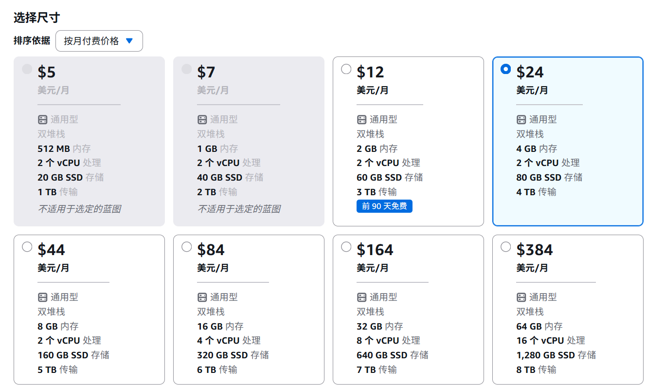 价格 :推荐选择默认的 $24/月 套餐以保证性能