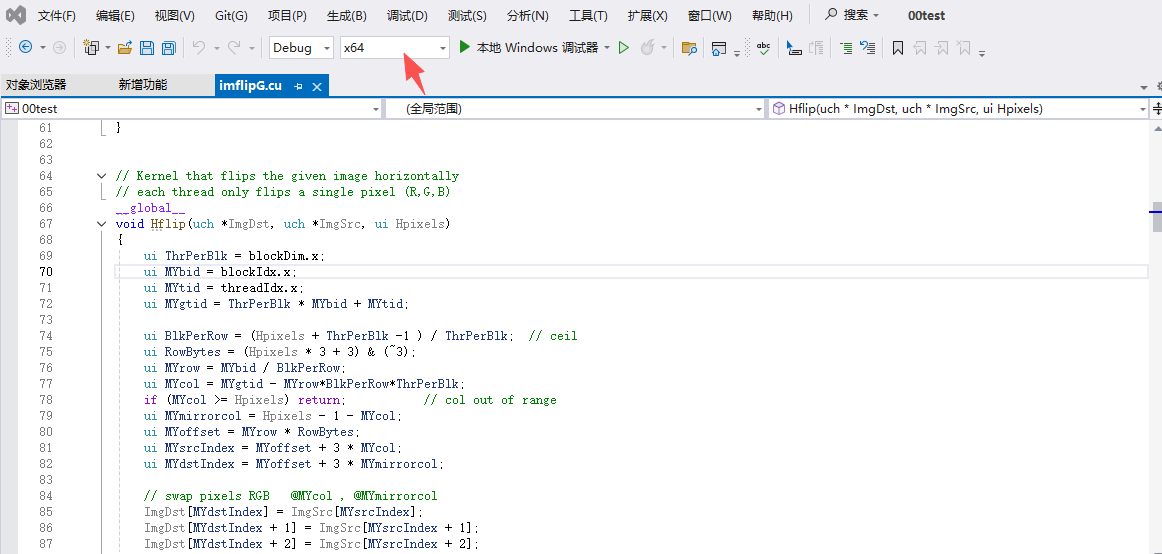 将现成的代码imflipG.cu, 放到与kernel.cu 同级的目录下