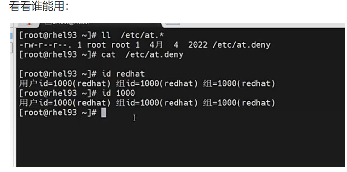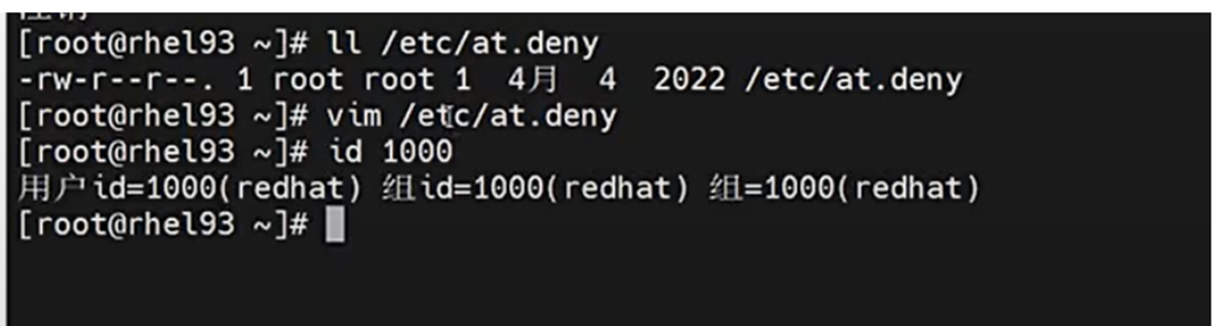 第二步:若 /etc/at.allow 不存在,则寻找 /etc/at.deny (黑名单) 文件,写在该文件中的用户不能使用 at 命令