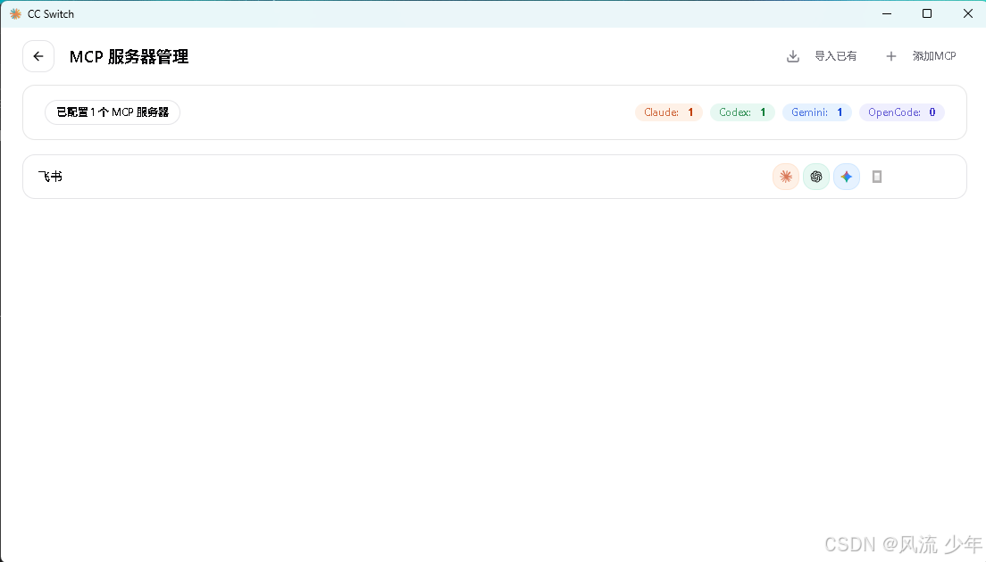 AI IDE CLI工具越来越多,有Claude Code、Codex、OpenCode等,多个客户端都要分别配置自己的大模型参数,配置分散在不同的文件中比较麻烦,cc-switch是一个UI工具用于管理不同AI IDE的大模型配置。