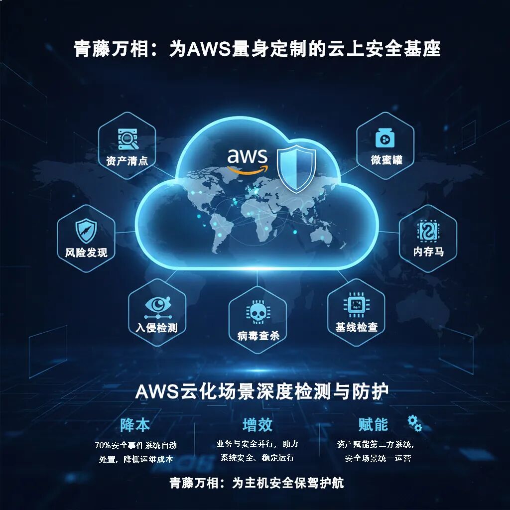 作为中国云安全整体解决方案领军企业及AWS 战略合作伙伴,青藤云安全深谙中国企业出海面临的全球化云上安全风险与挑战。依托多年技术积累和实战经验,结合该汽车服务平台的出海实际安全需求,青藤云安全量身打造了基于 AWS 云平台的自适应主机安全防护体系。