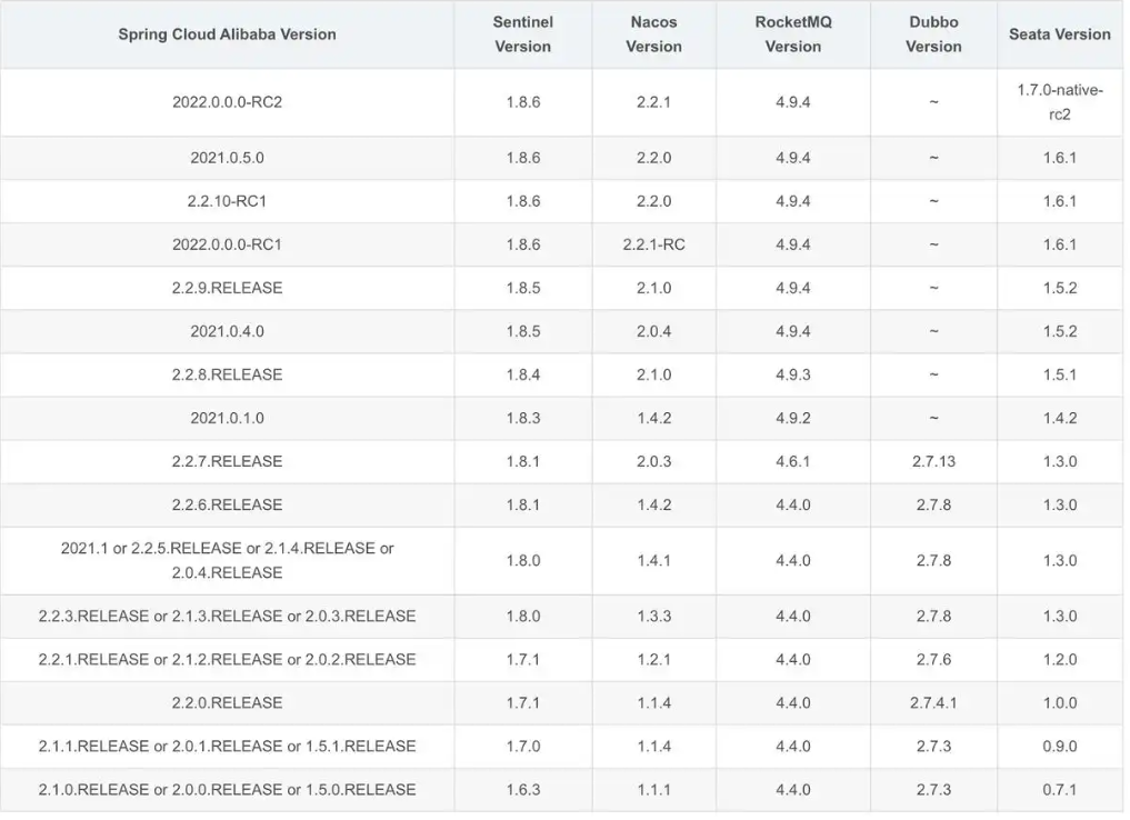 spring cloud 和 nacos的版本对应关系