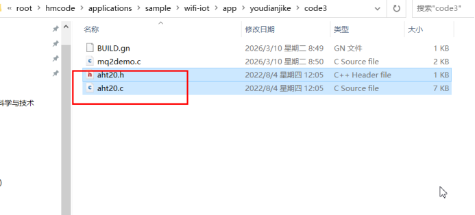 1.导入驱动文件aht20.c、aht20.h到code3工程目录