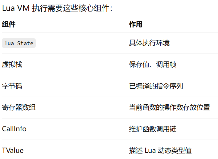 Lua 虚拟机(Lua VM)是 Lua 语言的核心执行引擎