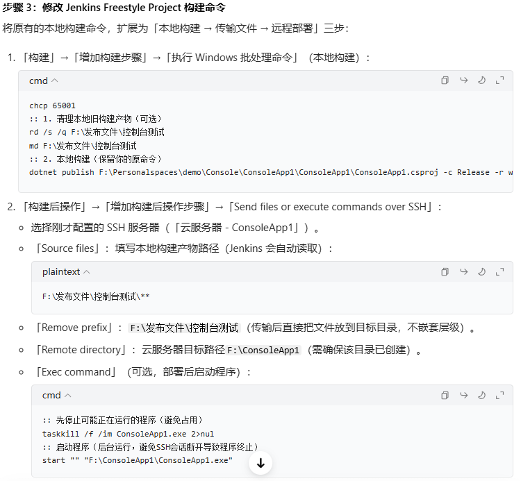 关于如何实现【本地上传到云服务器的Jenkins,让Jenkins在生产环境部署更新】的问题,因本人精力有限,可参考AI的回答,不过这个回答是比较基础版的,完整步骤最好是【本地打包-本地压缩-本地上传到云(Jenkins管理界面)-备份旧的-关闭旧的-解压新的-开启新的-失败则回滚,成功则正确输出】: